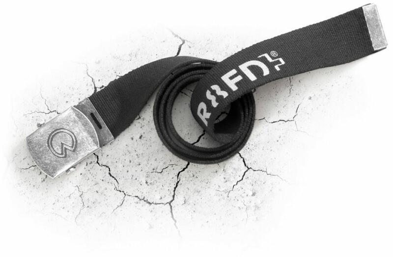Textil öv fém csattal és logóval. Fekete színű, a csat lehetővé teszi a kívánt hossz beállítását.