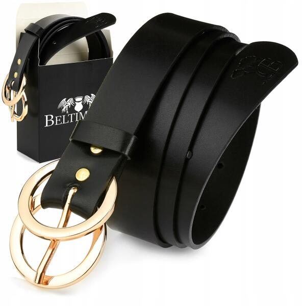 Beltimore Női bőr öv fekete arany körökkel, masszív, klasszikus 3 cm széles Beltimore (D50_85)