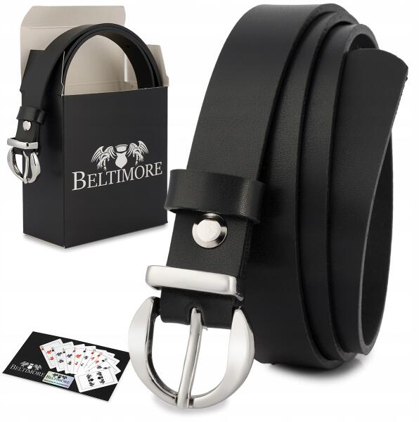 Beltimore Női bőr öv nadrághoz fekete nat bőr 1, 8 cm Beltimore (O20_110)