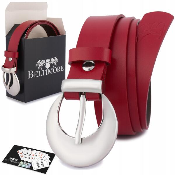 Beltimore Női bőr öv nadrághoz piros nat bőr 2, 5cm Beltimore (O01_95)