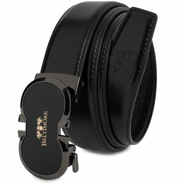 Beltimore Öv férfi bőr öv nadrághoz, casual, öltönyhöz, automata csattal, sima Beltimore (A39black_140)