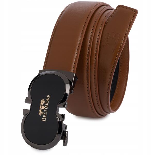 Beltimore Öv férfi bőr öv nadrághoz, casual, öltönyhöz, automata csattal, sima Beltimore (A39brown_140)