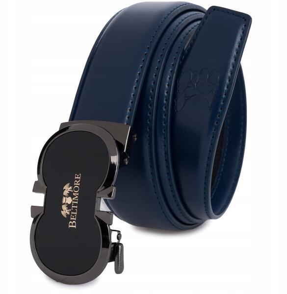 Beltimore Öv férfi bőr öv nadrághoz, casual, öltönyhöz, automata csattal, sima Beltimore (A39navy_110)