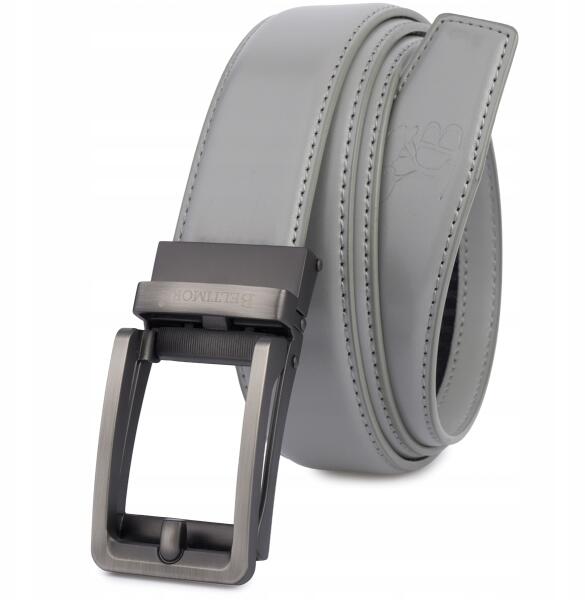 Beltimore Öv férfi bőr öv nadrághoz, casual, öltönyhöz, automata csattal, sima Beltimore (A41lightgrey_135)