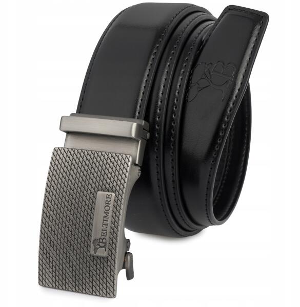 Beltimore Öv férfi bőr öv nadrághoz, casual, öltönyhöz, automata csattal, sima Beltimore (A52black_120)