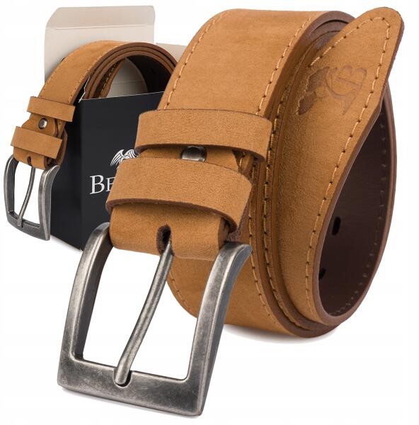 Beltimore Öv férfi velúr bőr 4cm széles klasszikus camel prémium Beltimore (W47_85)
