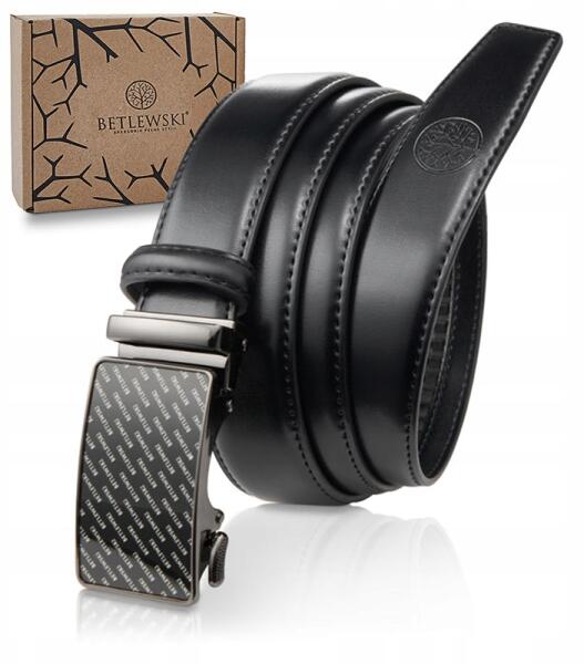 Betlewski öv valódi bőrből férfi automata fekete csat logóval öv (C30-LO CZARNY 115)ALLEGRO