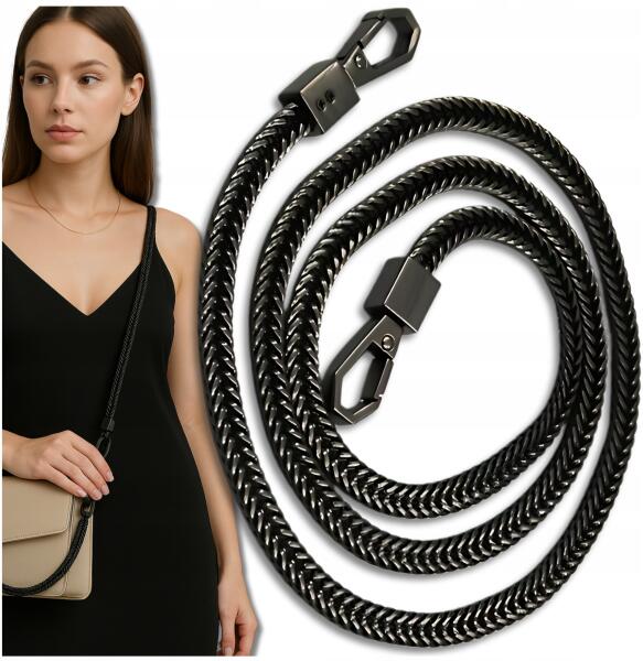 EdiBazzar Fekete Öv Táska Táskák Lánc Hosszú Fém Vastag Női Páncéllánc (PASEK DO KOPERTÓWKI TOREBKI LISTONOSZKI TORBY)