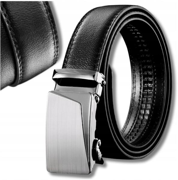 EdiBazzar Öv automata Férfi fém csat automata fekete öko bőr (5905884010082)ALLEGRO