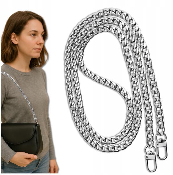 EdiBazzar Öv kézitáskához hosszú lánc Ezüst fém páncél szilárd (Pasek do torebki torby łańcuch długi Srebrny)
