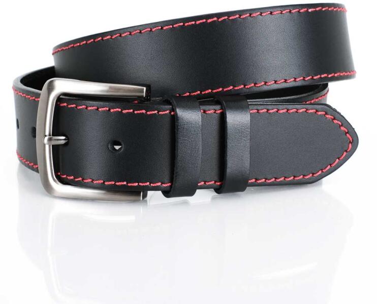 Marquis CollectionValódi bőrből készült férfi öv fekete színben, hagyományos övcsattal, szélein piros varrással. Kiváló választás hétköznapi , vagy akár alkalmi viselethez! Tipp: Mérje meg a derékbőségét, és az ahhoz legközelebb eső méretet válassza!