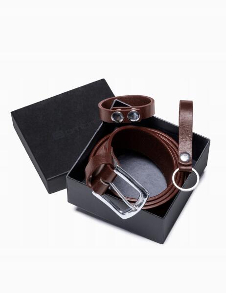 Ombre Férfi bőr szett öv kulcstartó karkötő V2 A852 S/m barna (168406)