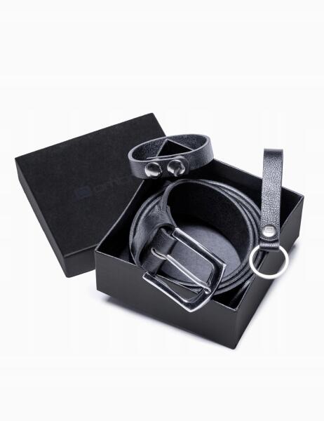Ombre Férfi bőr szett öv kulcstartó karkötő V2 A852 S/m fekete (168404)