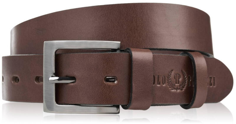 Paolo Peruzzi férfi prémium minőségű bőröv klasszikus csattal, elegáns 130 cm | barna