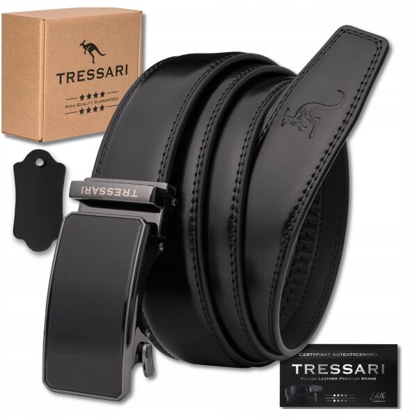 Tressari Öv automata csattal, fekete, nadrághoz, valódi bőr, férfi Tressari (Czarny pasek automatyczny elegancki)ALLEGRO
