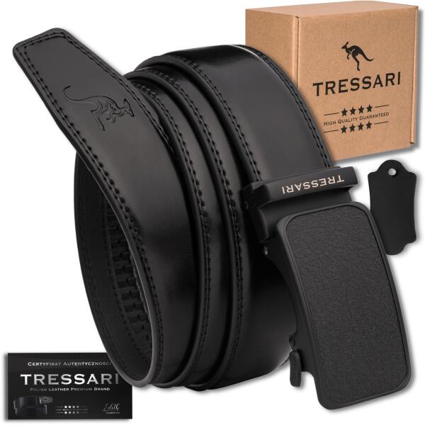 Tressari Öv csat automata férfi klasszikus öltöny 100% valódi bőr Tressari (TRESSARI czarny pasek z klamrą automatyczną)ALLEGRO
